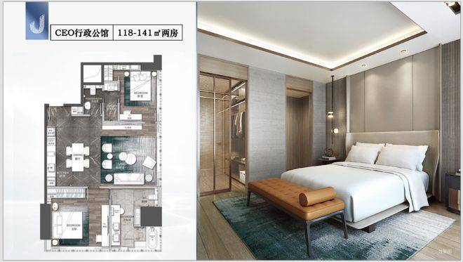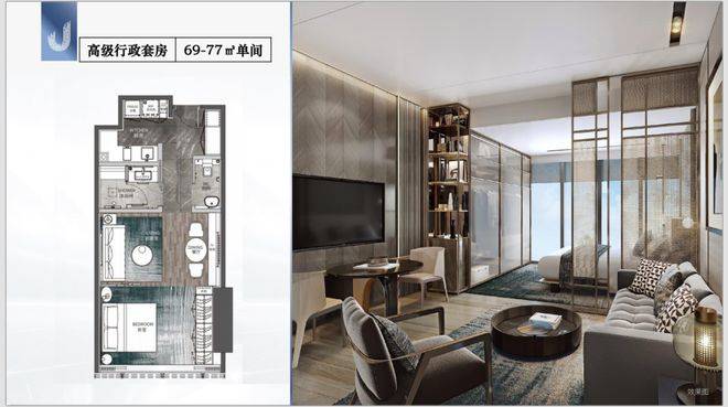 产品主打酒店服务式行政公馆,面积覆盖69到180平方米,户型从单间到三房都有对应。69-77平方米高级行政套房适合单身精英或纯投资;106-140平方米尊贵行政套房为一房设计,空间利用更灵活;118-141平方米CEO行政公馆是两房格局,满足小家庭需求;180平方米总统行政公馆则是三房顶级配置,私享感最强。